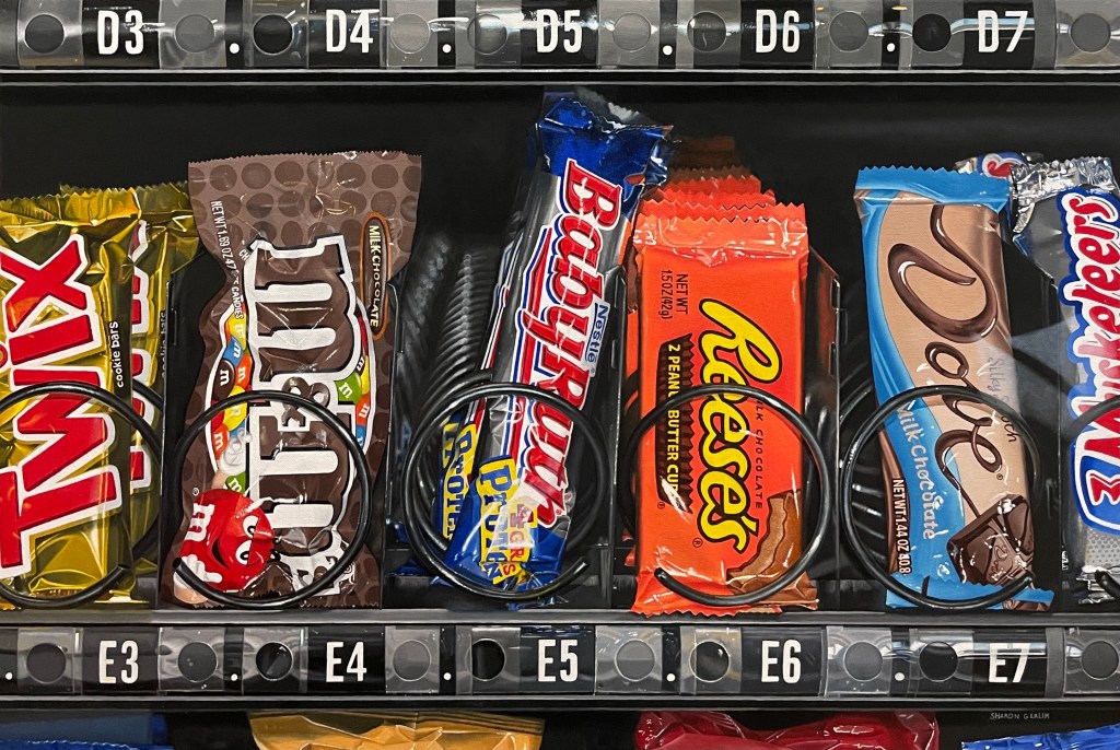 “I paint larger-than-life contemporary realism paintings using vivid colors and seductive undertones to create a love affair between Photorealism and Pop Art”